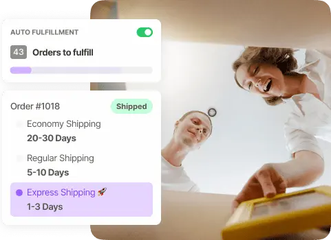 Deliver orders quickly with our trusted dropshipping suppliers and fulfillment network. No delays, no headaches — just fast shipping, happy customers, and fewer refunds.